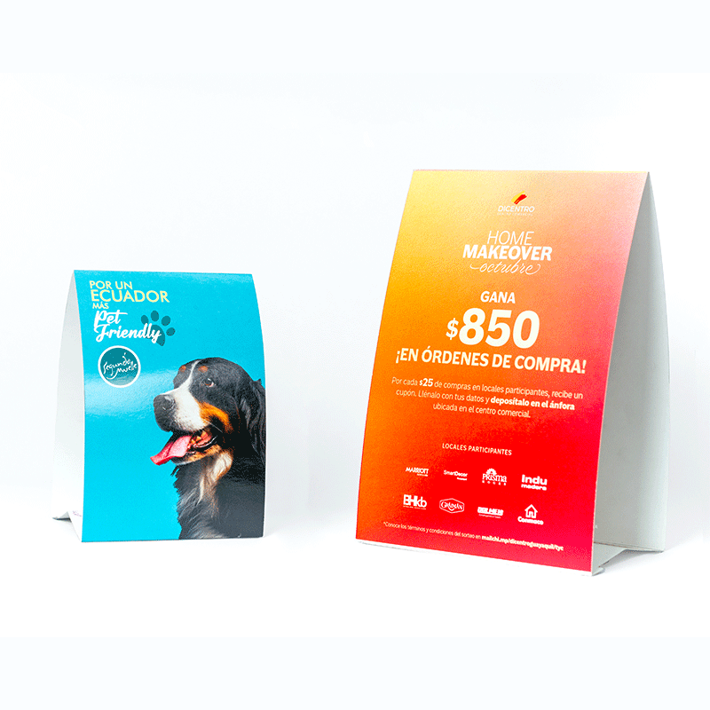 Habladores para mesa en acrílico de 3 mm, con o sin publicidad interna.