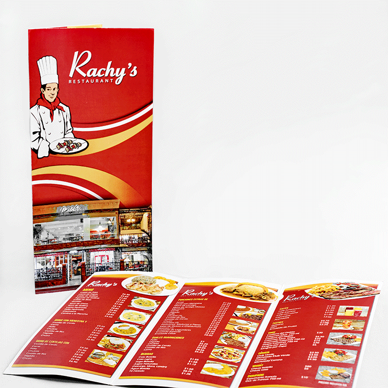 Carta de menú elaborada en cartulina Couché 250gr. / 300gr. Laminado en brillo o mate.